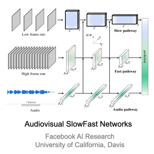 "Audiovisual SlowFast Networks for Video Recognition" Fanyi Xiao (University of California Davis)*; Yong Jae Lee (University of California, Davis); Kristen Grauman (Facebook AI Research & UT Austin); Jitendra Malik (University of California at Berkley); Christoph Feichtenhofer (Facebook AI Research) Full Paper |